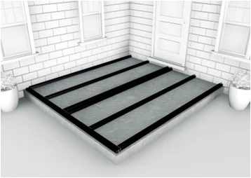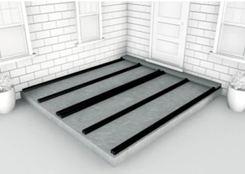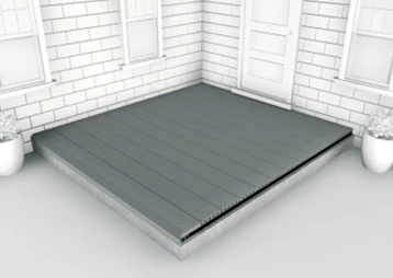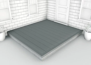 Boards must not be laid directly on the ground but should be fixed to the joists of a suitable supporting substructure. This will vary, for a domestic patio deck we typically recommend a simple concrete base and either wooden or WPC joists.