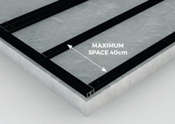 The maximum recommended space between joist rows depends on the angle at which you intend to lay your boards in relation to the joists, but should never exceed 40cm, please see diagram.
